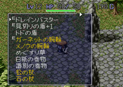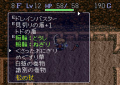 | 風来人にとっておにぎりは寿命・・・・ 失態を犯したシレンを嘲笑うかのように不作・・・・! ぴーたん不作・・・・! |